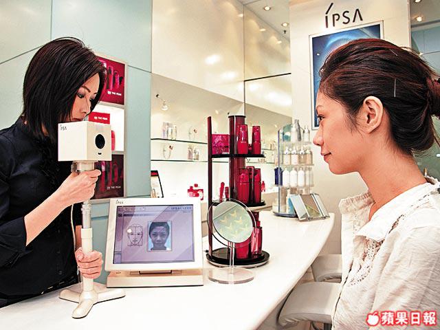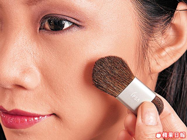 嘉欣的鵝蛋面形上闊下尖,感覺飽滿又不胖,如果面形沒那麼完美,便可以靠光影和陰影營造立體感。化妝師Queenie教不太懂打陰影的女生,不妨利用珠光調色底霜在面上以菱形狀來打底,沒有塗上的部份便會成為自然陰影。