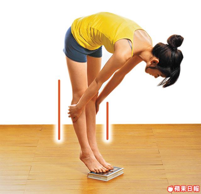 3.最後彎腰將雙手攝於雙腳腳尖下,維持5秒即可。