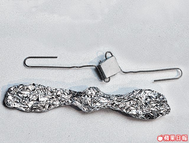 2.左右各一個萬字夾插在預先剪細了的方形擦膠上。