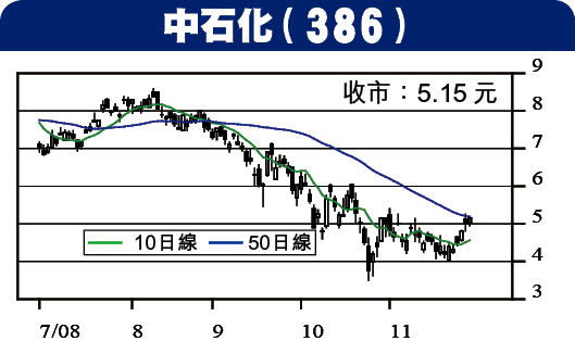 內地成品油機制推出前,市場再有詳細及利好石油石化股的消息傳出,由於預期新措施對煉油業務最為有利,主要是日後油價再上升,石化企業有定價的自主能力,可以透過調升產品價格紓緩成本上升,中石化股價在向上升破4.60元降軌頂部後,技術上支持股價上試6元阻力,可於5.10元買入,跌穿4.80元止蝕。