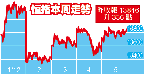 【本報訊】中資金融股繼續成為港股的升市火車頭,恒指擺脫道指前晚急跌拖累,昨日揚升336點(2.49%),收報13846點。H股指數則上升201點(2.79%),報7428點,全日成交則減至374億元。