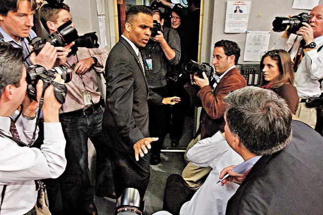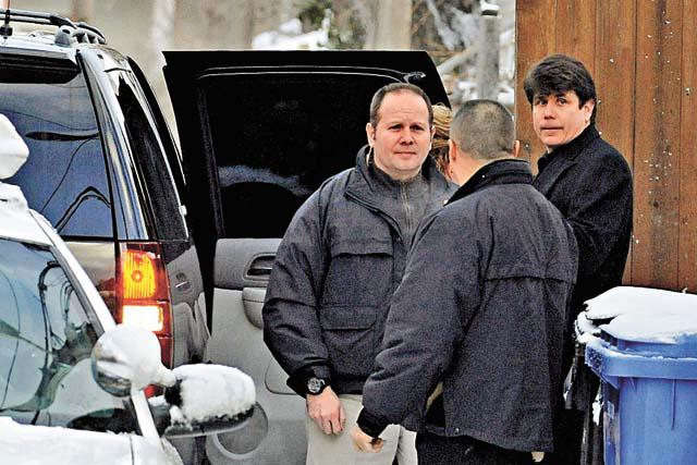 布拉戈耶維奇(右)前天從後巷離開住所,準備驅車上班。美聯社