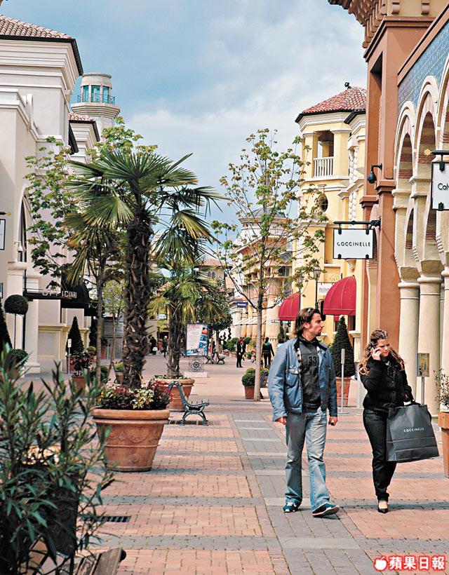 GiorgioArmani、D&G及RobertoCavalli也開了小檔,價錢減至約六、七折。若嫌以上品牌太大路、想認識最流行的意大利時裝,可參考BorsaSegu、Tortora、Bandiera等少數港人認識,卻在歐洲大行其道的土炮貨,多以三至六折出售,設計簡約,以黑白灰藍啡為主,偶帶花邊或圖案。售貨員姐姐說:「可以返工,也可以去party。」Outlet的設計,一入門口就是咖啡廳,讓你感受一下著名的帕爾馬火腿味道,養養神才再出擊購物。可恨是我對店中芝士更加着迷,飽餐一頓,不行多轉買多一點也燃燒不了腹中脂肪!