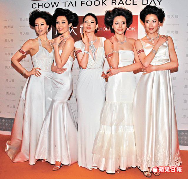 胡杏兒昨午於沙田馬場出席「周大福賽馬日」,示範了200卡價值200多萬元的鑽飾,大會又邀請了多位名模包括呂燕、陳嘉容、姚書軼(Mikki)和周偉童演繹總值超過1,500萬元的高級珠寶。近日本港天氣越來越冷,天文台更發出寒冷警告,但一眾模特兒均穿上性感晚裝,胡杏兒則以Fendi大露背裝示人。
