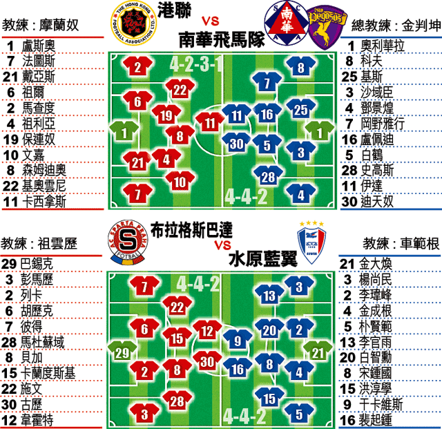 至於上屆韓職「雙料冠軍」水原藍翼今番來港主要為3月展開的聯賽作季前準備,球隊已開操3個星期,加上陣內有前國腳守衞宋鍾國與新晉國腳中場白智勳,配合巴西前鋒干卡維斯與前中國隊長李瑋峰,實力相當不俗。