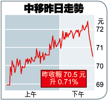 中移動(941) 昨收報:70.50元