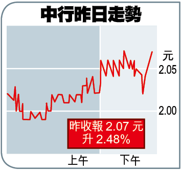 中行(3988) 昨收報:2.07元