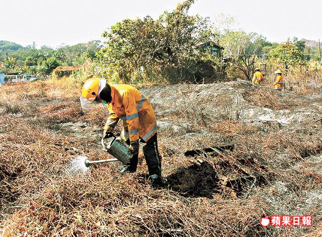 山火面積約100乘200米,消防員懷疑山火是有人遺下煙蒂引起。