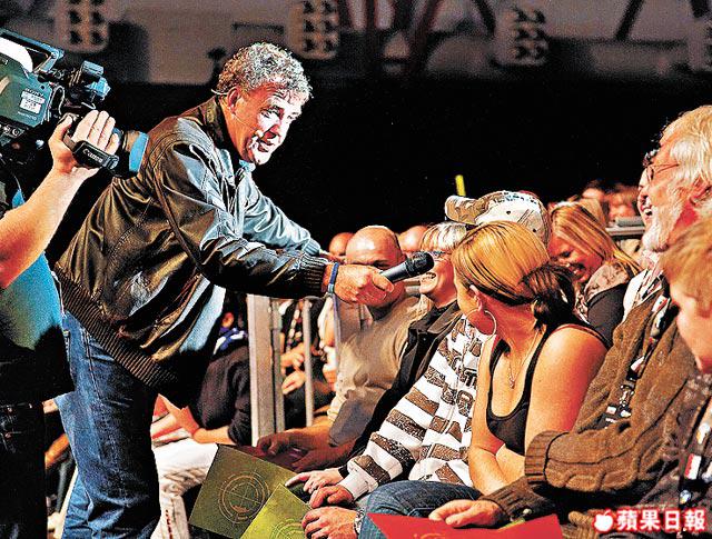 電視節目入面就有3位主持,另一位James點解唔嚟香港呢?今次反而係Richard有口德,只係話James太忙、玩得太勁,消化系統唔適合長途飛行;Jeremy就話:「James可能唔係咁鍾意出國。咁仲好,同本地(香港)人合作一定無同James咁悶!」咁都得!話晒同James合作咗咁多年,貿貿然轉拍檔,合作得來嗎?「仲好,有本地人同觀眾繙譯,用番大家明白嘅俚語同笑話咪仲易明,對我嚟講,佢(Marchy)仲肩負重要嘅外交角色㖭!」Richard突然認真地答,而Jeremy就一貫幽默作風:「Marchy係賽車手,我講說話當然要慢啲同清楚啲,等佢(賽住車)都明白到我講啲咩。話晒係巡迴尾站,有無咩驚喜畀香港觀眾先?「……咁一定會係……」出乎意料地異口同聲,不過Jeremy就留咗少少空間畀大家想像:「……你估我唔到㗎啦……」換個角度,有咩場口係唔可以錯過呢?Richard:「場場一樣……或者留意吓我同Jeremy揸車時會唔會有咩撞花撞爛囉!」Jeremy:「有武裝直升機上場勁唔勁,仲有諗唔到嘅特技同比試,又有成億超跑上場,成群舞蹈員又有爆炸場口……」夠!咁由A至F,你哋會畀幾多分?Richard斬釘截鐵話係AGrade,而Jeremy仲要幽多一默:「場表演好出色而Richard就好垃圾,幸好我同Marchy在,幫一幫佢喇!」笑到肚痛!