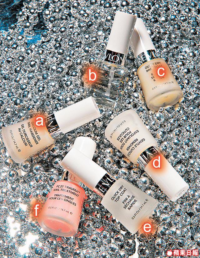 除了手部皮膚,指甲邊的位置都很容易積聚死皮,除了光顧NailTreatmentCenter外,自家護理都十分重要。去除指甲邊的白邊後,在塗上有色甲油前,也應先塗底油。市面上亦有不少指甲護理產品,好似Revlon近期推出五款不同的NailTreatment系列,單塗CalciumGel都可以讓甲面有一層光油感覺。