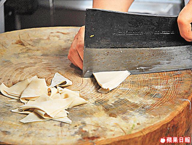 雲吞皮煮前才切片,否則要用濕毛巾冚好,保持濕度。