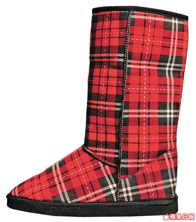 黑色紳士帽$69、黑色喱士吊帶背心$30、鮮橙紅色短袖上衣$99、黑色毛毛短身褸$699、深藍色洗水短打牛仔褲$149、黑色Knee-High長靴$299