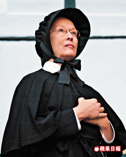 《蘋果》洛杉磯獨家專訪--今年6月便滿60歲的奧斯卡影后梅麗史翠普(MerylStreep),近年非常多產,在拍完歌舞片《媽媽咪呀》(MammaMia!)後,又推出了題材嚴肅的《聖訴》(Doubt),在片中搖身變成凶神惡煞的修女,順利第12度獲提名奧斯卡影后。日前她在比華利山四季酒店為《聖訴》宣傳,並接受本報獨家專訪。