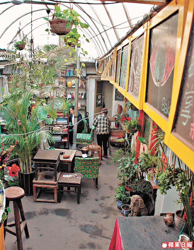 一個四合院,以圓拱形的玻璃作天花,成了胡同內的溫室,晚上抬頭一看,便能見到明月星星。最特別的,是院外招待處有棵老樹,一直延伸至院內後園,為後園天井增添綠意。偶爾在天井下呷一口茶,睡在酸枝床上,就是如此輕鬆、自在。