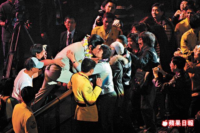 【澳門直擊】金融海嘯冲擊下,澳門前晚大年初六仍喜見一片歌舞昇平景象,歌神許冠傑(Sam)、草蜢和黃宗澤等分別在濠江開騷,其中以阿Sam個唱最為墟冚熱鬧。阿Sam除與扮財神的細仔許懷谷向觀眾大派利是外,更大派熱吻,不論男女老幼或是女dancer照樣咀嘴,令全場觀眾high爆。