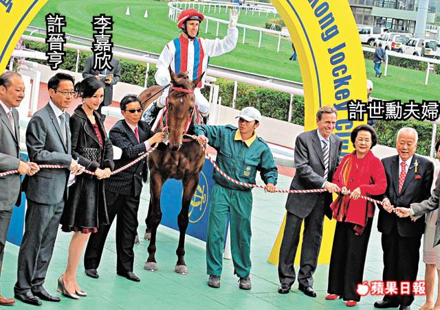 昨日許世勳共有三匹愛駒賞惑、勁惑和創惑出賽,年初二缺席許家開年飯局的嘉欣悉心打扮陪伴老公和老爺奶奶到馬場觀賽補鑊。被指有孕在身的嘉欣腳頭勁好,賞惑昨在第一場賽事出戰,即以14倍賠率爆冷勝出,第八場百年紀念短途盃時創惑也以15倍賠率跑贏世界草地短途馬王「蓮華生輝」取得第一名,加上嘉欣盛傳懷孕,許家可謂喜事重重。