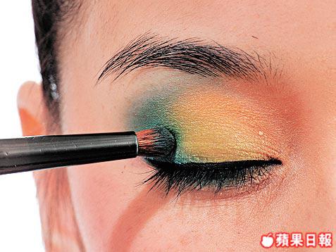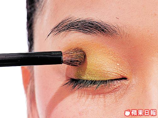 緊接鮮黃色眼影,在眼中央位置塗上草綠色眼影#MachaGreen。
