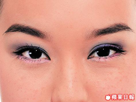 先在整個眼窩位搽上淡灰色眼影#Periwinkle作打底,再在眼摺位搽上薰衣草色#UltraViolet為主色,最後可以將薰衣草紫色眼影搽在下眼線位,令眼妝更為統一。