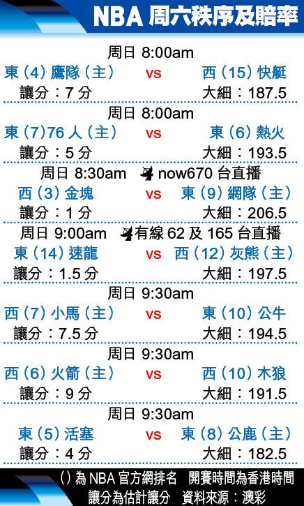 終盤:76人讓5分 走盤