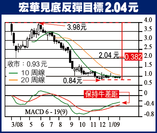 宏華去年3月上市,招股價3.83元,至今仍潛水76%,市值由123億元跌至30億元,股價則由3.98元直跌至0.84元。既已見底,以黃金比率0.382倍推算首個反彈目標,可見2.04元,實乃股價Double之選。