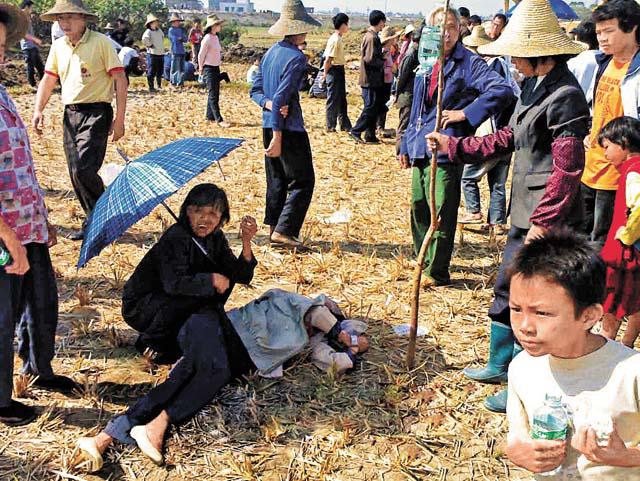 2006年12月,廣東汕尾東洲鎮村民反對當局強徵土地建發電廠,與公安武警發生流血衝突。