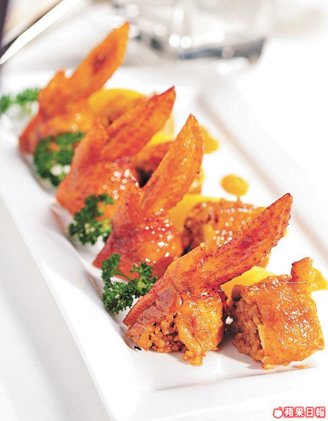 4.將(3)釀入雞翼中,放入滾油,用慢火浸5分鐘至熟後上碟。