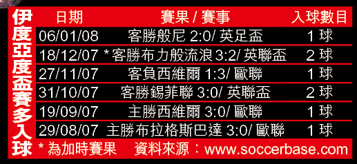 翻看數據,伊度亞度加盟兵工廠後,聯賽上陣17場入4球;但在各項盃賽已累積了8球。伊度亞度上季在本土盃賽及歐聯常有佳作,包括英聯盃8強作客布力般,於加時射入奠勝球以3:2擊敗對手晉級。