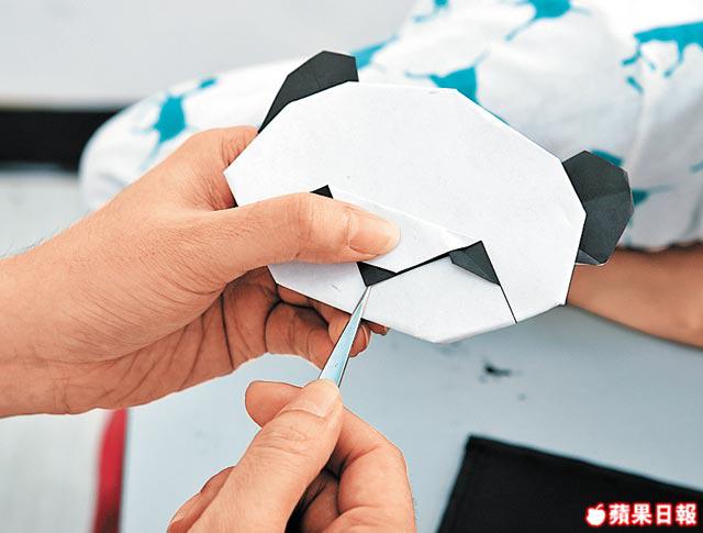 摺出一個熊貓頭要多個步驟,UncleDavid說,不用一板一眼的跟到足,略有偏差,反而可以摺出不同形態,每一隻熊貓也不一樣,像擁有個性呢。