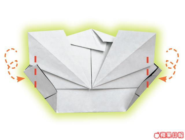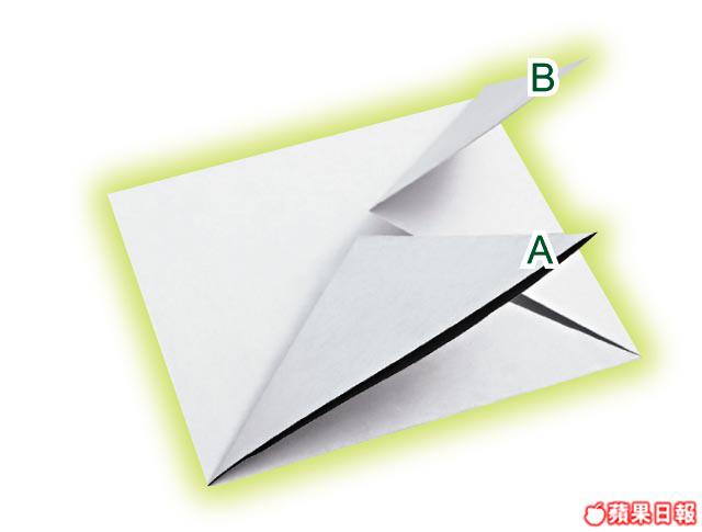 3將A及B兩角在1/3的位置向下摺出小三角,打開,按平。