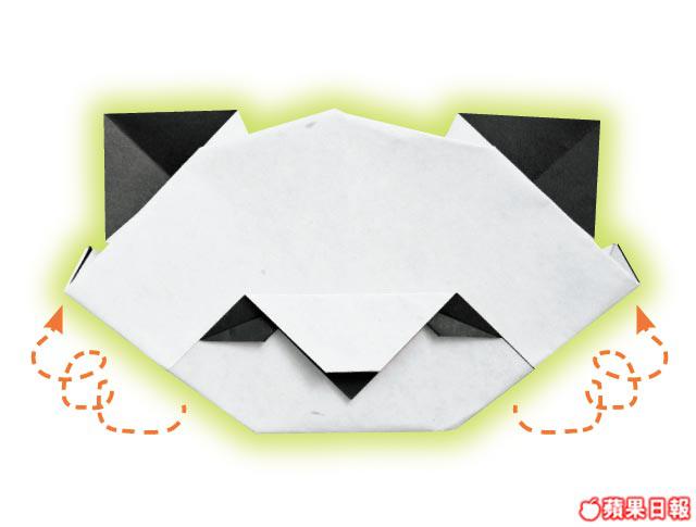 7熊貓的臉不可起角,快沿圖中的虛線往後摺出圓圓的臉。