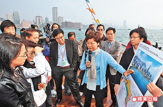 初春二月,陰晴不定,發展局局長林鄭月娥約議員出海,仲要帶埋手下土木工程拓展署、地政總署、規劃署等幾十個官員隨行,咁大棚人上船,當然唔係維港半天遊咁簡單,而係要向議員介紹維港兩岸多項大型基建進度,了解最新情況。