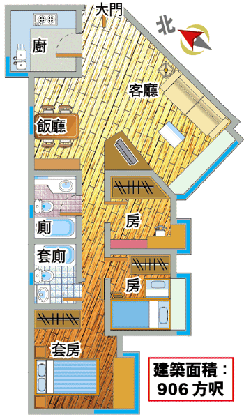 建築面積:906方呎