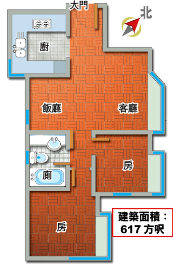 建築面積:617方呎