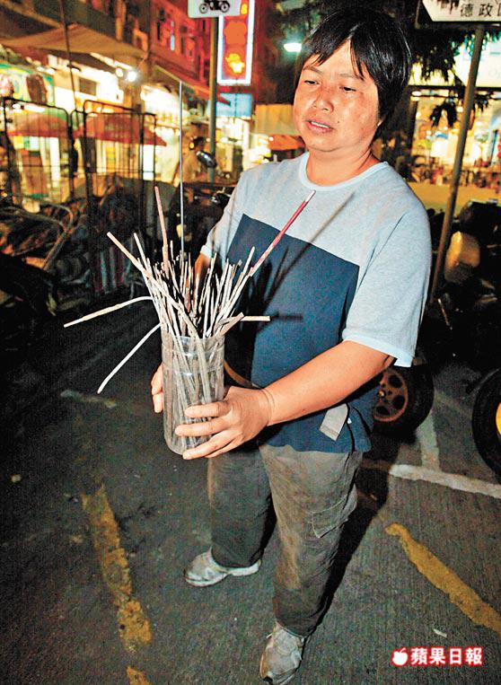 鄔女士說,連日來至少掉下三十多支鐵枝;康文署工人昨日離開後,又有十多二十支掉下,共重一公斤以上。