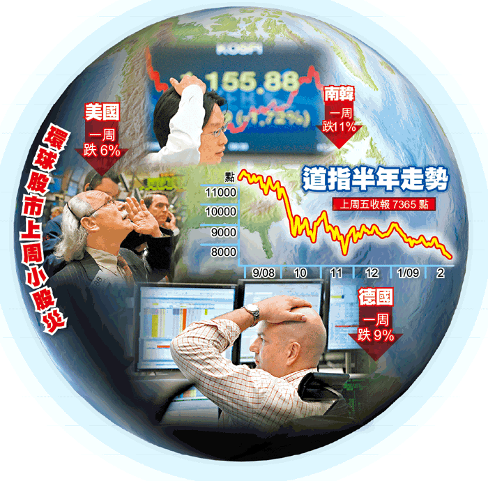 除美國外,環球主要股市上周全線走低,當中南韓跌逾一成,德國及法國亦挫9%及8.3%,連今年全球表現最佳的中國亦難逃一跌,滬深300指數結束5周升勢,上周跌2.3%。