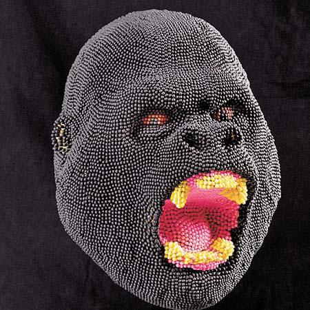 52歲的麥克,與妻子每天都在倫敦的工作室埋頭苦幹,試過花了三個月,用膠水將3萬支火柴逐一貼在黏土模子上,製成38厘米高,一臉猙獰的兇惡大猩猩頭像。