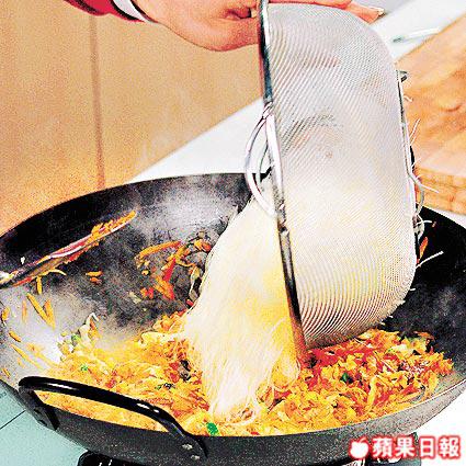 浸米粉一定要用冷水,不可用熱水或暖水浸;而且炒米粉時,先將味道調好,才放入米粉,會較易入味。