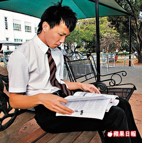 「因為要預備ALevel考試,已約半年沒有正規練習,上月校內的inter-house田徑賽,我初賽同決賽都是跑11秒正,這個時間我中三後都未做過,所以下星期的學界田徑賽,有種像去到戰場的感覺,死硬。」黎振浩自從去年8月代表完香港參加京奧100米後,九成九時間用在溫習,預備考試。