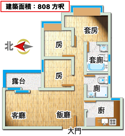 建築面積:808方呎