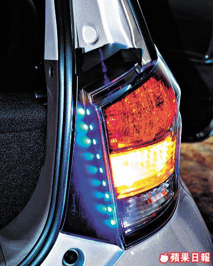 a.尾燈內側置有一排九盞藍色LED燈,關門都流出一線藍光,型。
