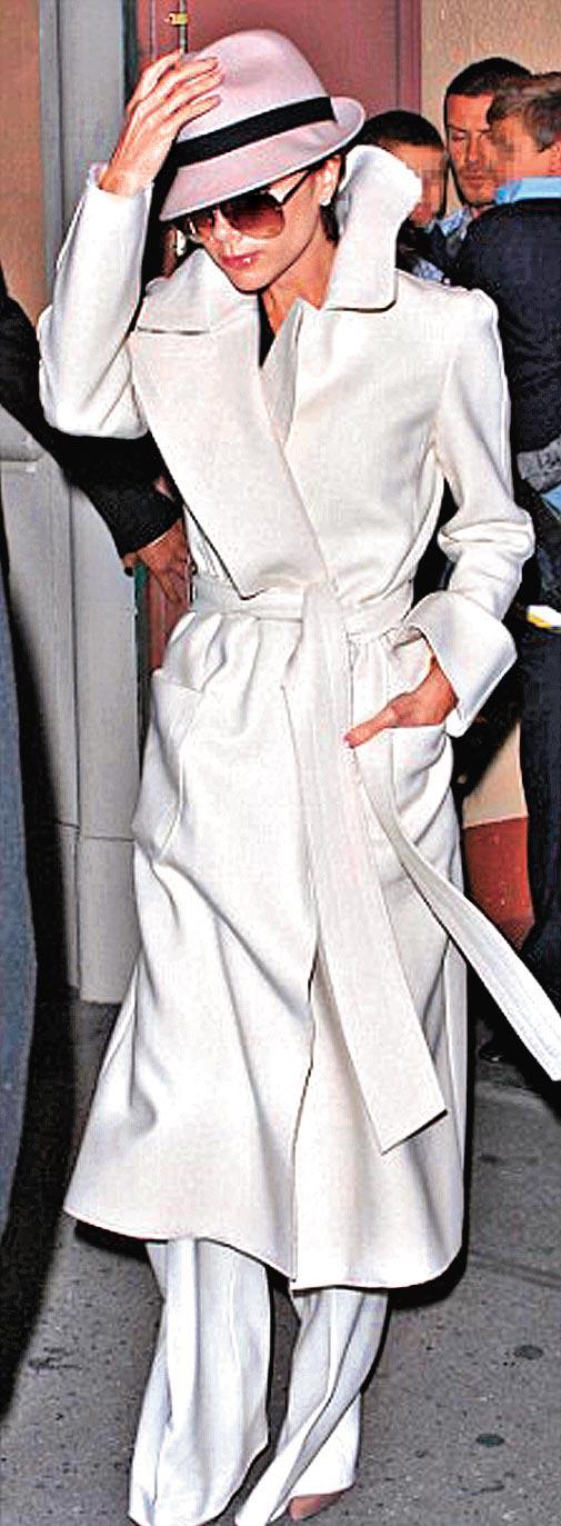 貪靚的碧咸嫂VictoriaBeckham神憎鬼厭是一回事,穿衣品味佳又是鐵一般的事實,碧太面容繼續討人厭,但一身紳士帽+超長trench+闊腳西褲,又真箇頭頭是道的好看,而且又是收視/被刊登的保證,各大品牌繼續歡迎她的緣由絕對成立。
