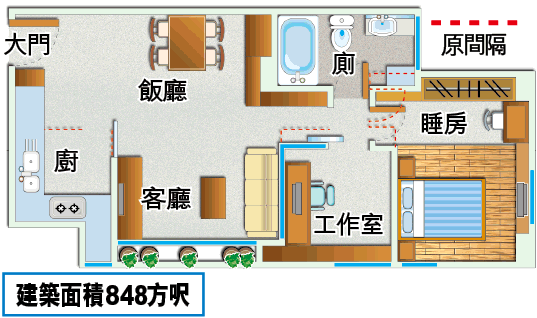 面積:848方呎