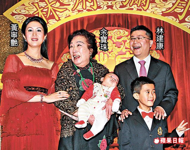 林百欣的養子林建康前晚在中環為兒子林孝政擺雙滿月酒,林建岳及前妻謝玲玲前後腳到賀,二人的女兒林恬兒也有現身。為孫兒改名的林老太余寶珠,更送了一個玉錢,希望小孫快高長大,又笑言希望可以抱曾孫四代同堂。