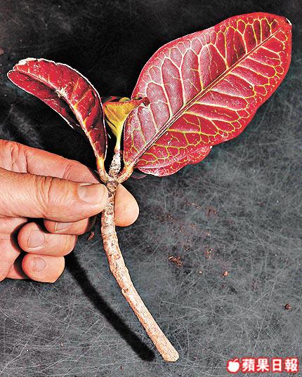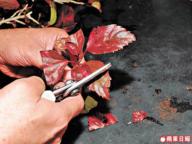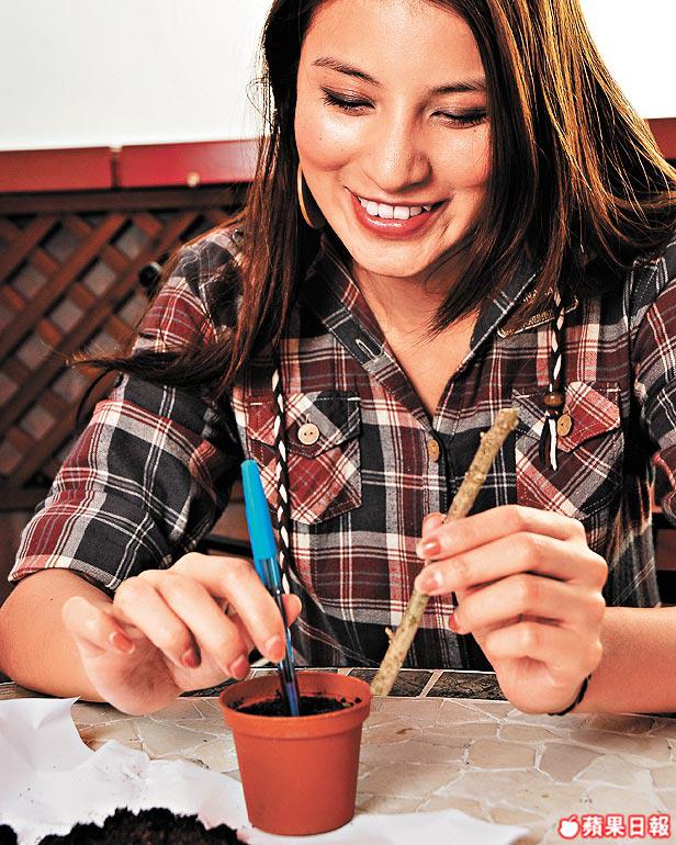 2)把枝條上的所有葉片剪去約1/2,以便植物長出綠葉。最後在土壤上挖小洞,把枝條插入後灑水即可。
