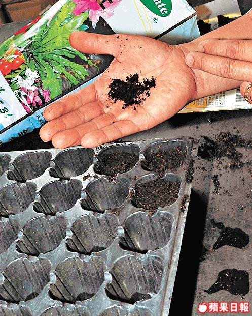 土壤加至七成滿;混合種子與泥輕拍脈搏位讓其灑在花盆中;底碟注入水讓泥土吸收。