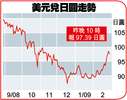 英鎊與日圓雙雙走軟,英鎊由周初高位的1.4650跌至1.4160才見支持,其後在英國政府推出「毒資產保險計劃」後,反彈至接近1.44,反而日圓因經濟危機加深而毫無反撲之力,現時正朝100關口邁進。筆者上周建議博英鎊與日圓反彈,買英鎊尚差數十點未能順利開盤,買日圓卻已被打靶,損失的150點子,寄望日後追回。