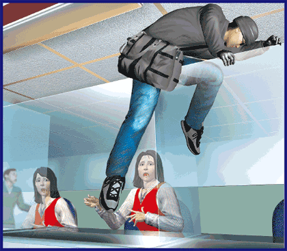 現場為東堤灣畔5座地下的上海商業銀行(東涌分行),內有四個服務櫃枱窗口。昨下午3時許,銀行內有10多名顧客,突然有一名頭戴冷帽,眼戴黑超和手套的20餘歲男子闖進;疑人身材不高,約5呎5吋,跳上一號櫃枱窗口,從窗頂兩呎闊罅隙鑽入去。