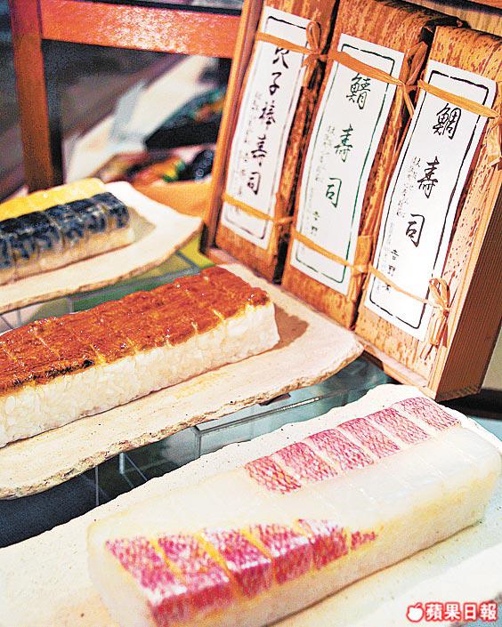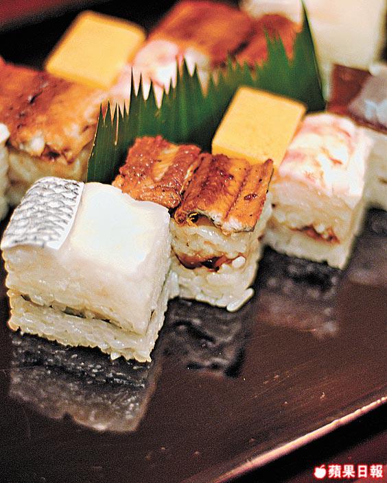 以前的大阪壽司無賣相,後來發現醃過、蒸過或燒過的魚、肉,加了大阪醋的壽司飯能放更久,令遠至奈良、京都的客人都來電訂貨,成就大阪壽司的雛型。1940年代,大阪奈良一帶住的都是有錢人,食材變成加鯛魚、甜蝦、星鰻等,飯糰中間的冬菇也要煮5小時,為的只是成就錦緞似的圖畫。現在做這種箱壽司的店越來越少,因為木盒的操作並不簡單,師傅要先把飯、鯛魚、甜蝦跟蛋整齊的塞進盒裏,上蓋後壓呀壓,啪啪幾聲倒出一磚壽司,再切至完好無缺為止。