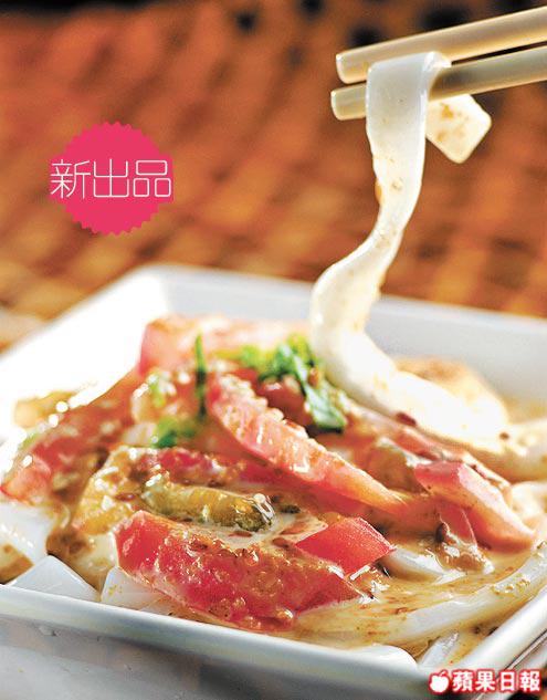 以蒟蒻粉等三種粉切片煮熟,淋上麻香醬,水晶粉清凉爽口。