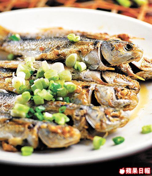 新鮮鮆魚用薑和鹽先醃一晚,再加葱吊味,慢火煎香。醃過後不失魚香和鮮味。